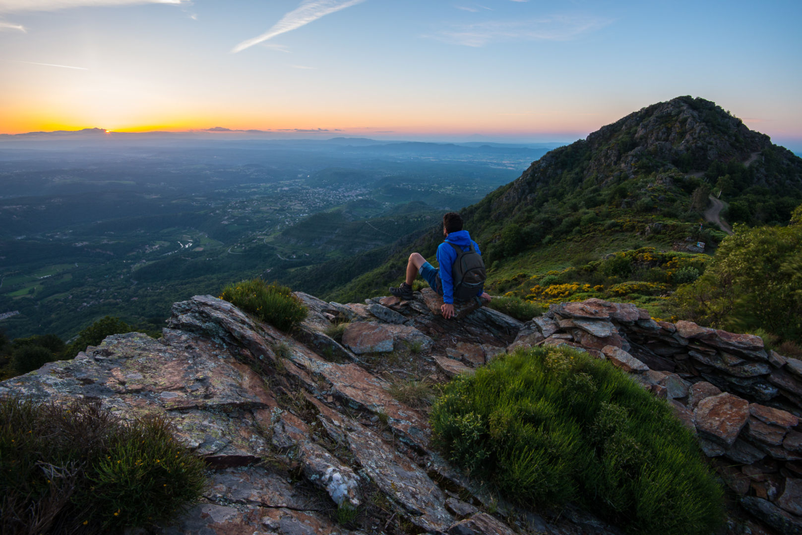 La tour de guet, point culminant du Serre de Barre se gagne via un sentier depuis la route (voir approche en voiture). Comme je vous le disais ces panoramas se méritent ! Ce lieu est aussi une superbe aire d’envol pour les parapentistes qui aiment à survoler les Cévennes d’Ardèche.